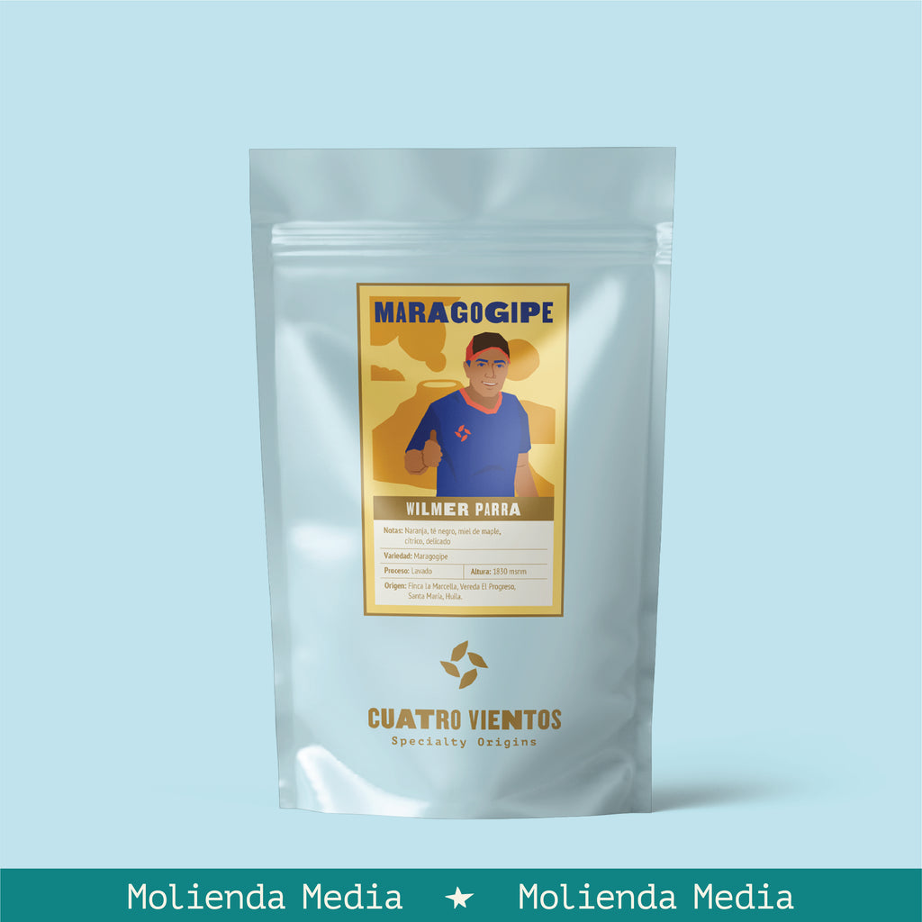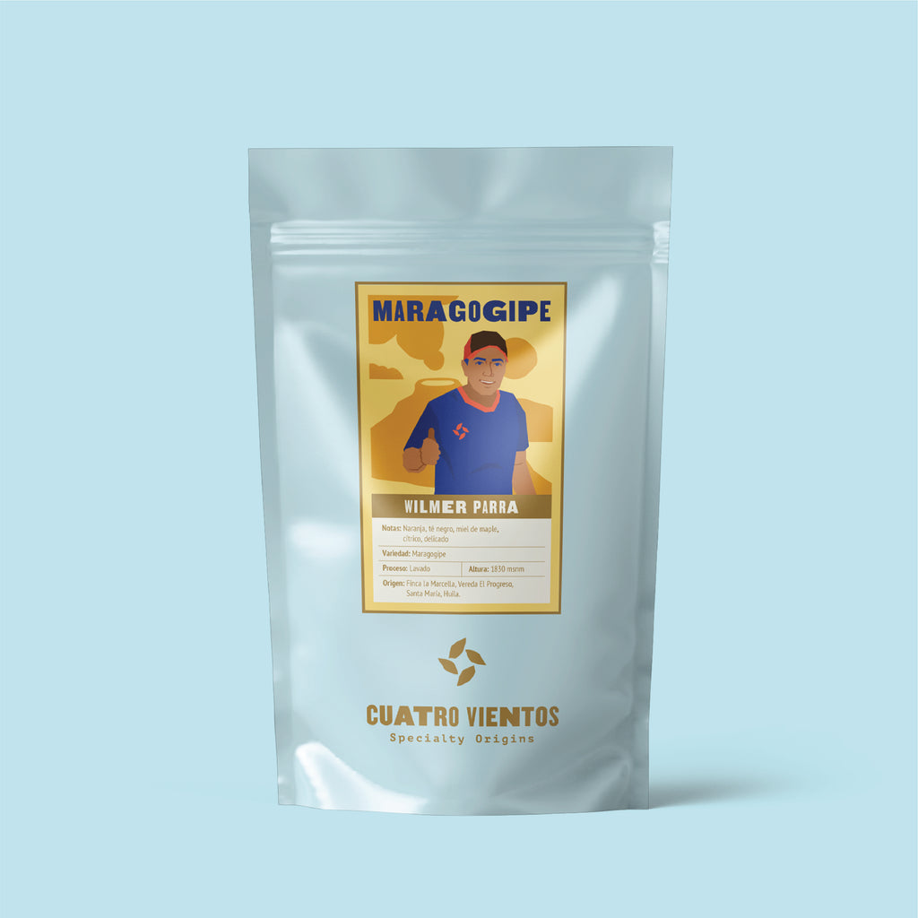 Maragogipe Lavado de Wilmer Parra destaca por su perfil aromático único, con notas intensas de naranja, té negro y miel de maple que ofrecen un balance cítrico y delicado. Cultivado con cuidado en la Finca La Marcella, vereda El Progreso, Santa María, Huila, este café refleja la dedicación y experiencia que Wilmer Parra imprime en cada etapa del proceso. Un perfecto reflejo de la calidad y singularidad del café de esta región.